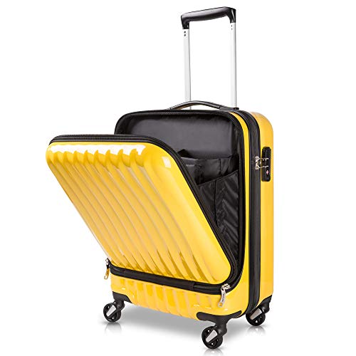 出張に便利 ノートpc収納ポケット付小型スーツケース ハードキャリーケース 小型 ラウンドファスナー カードキー式tsaロック フロントポケット 全5色 送料無料 旅行バッグ キャロン国